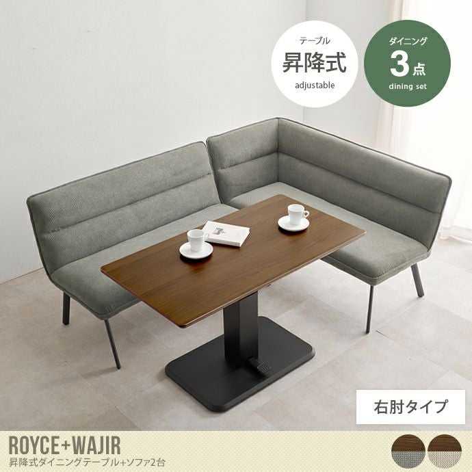【送料無料】幅115 幅137 幅122 ダイニングセット ダイニングテーブル ダイニングソファ 昇降テーブル ソファ コーナーソファ L字ソファ おしゃれ おすすめ 3点セット 昇降式 高さ調節 2人掛け 3人掛け 右肘タイプ 片肘 L字 木製 かっこいい ダークグレー