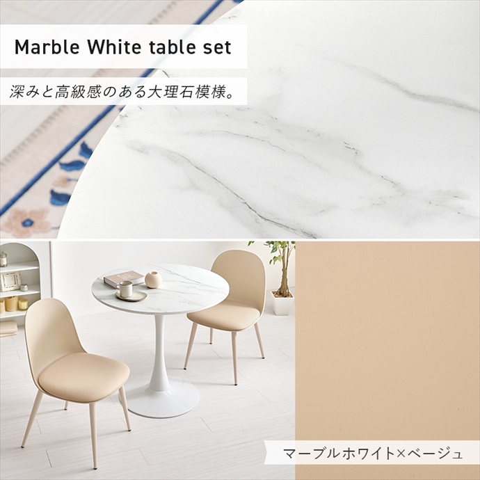 【送料無料】幅80 カフェテーブルセット ダイニングテーブルセット おしゃれ おすすめ 安い 2人用 セット テーブル 机 丸型 円形 デスク チェア 椅子 イス 大理石調 かわいい 一人暮らし 同棲 リビング ダイニング 店舗 サロン 食卓 作業 ベージュ