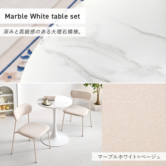 【送料無料】幅60 カフェテーブルセット ダイニングテーブルセット おしゃれ おすすめ 安い 2人用 セット テーブル 机 丸型 円形 デスク チェア 椅子 イス 大理石調 かわいい 一人暮らし 同棲 リビング ダイニング 店舗 サロン 食卓 作業 ベージュ