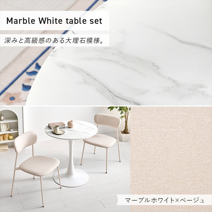 【送料無料】幅70 カフェテーブルセット ダイニングテーブルセット おしゃれ おすすめ 安い 2人用 セット テーブル 机 丸型 円形 デスク チェア 椅子 イス 大理石調 かわいい 一人暮らし 同棲 リビング ダイニング 店舗 サロン 食卓 作業 ベージュ