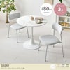 丸いフォルムが空間をやさしく見せるカフェテーブルと、くすみカラーがかわいいチェアを組み合わせたダイニングセット。角のない丸テーブルは視覚的な圧迫感が少なく、限られたスペースにもすっきりと置いていただけます。また座る位置を選ばないため、自由な距離感で心地よい会話が楽しめるのも魅力です。毎日の食卓がリラックスしたコミュニケーションの場となり、暮らしを上質に彩ります。