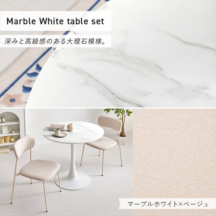 【送料無料】幅80 カフェテーブルセット ダイニングテーブルセット おしゃれ おすすめ 安い 2人用 セット テーブル 机 丸型 円形 デスク チェア 椅子 イス 大理石調 かわいい 一人暮らし 同棲 リビング ダイニング 店舗 サロン 食卓 作業 ベージュ