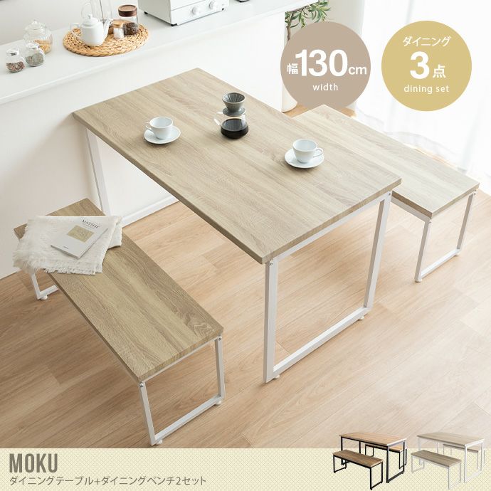 【送料無料】Moku モク 幅130 ダイニングセット テーブル おしゃれ おすすめ 安い 机 食卓 キッチン 机 長方形 ベンチ コンパクト 奥行70 3点 木目 ロの字型 リビング カフェ ファミリー 広々 PC 在宅 1人暮らし 2人 4人 ナチュラル/ブラック