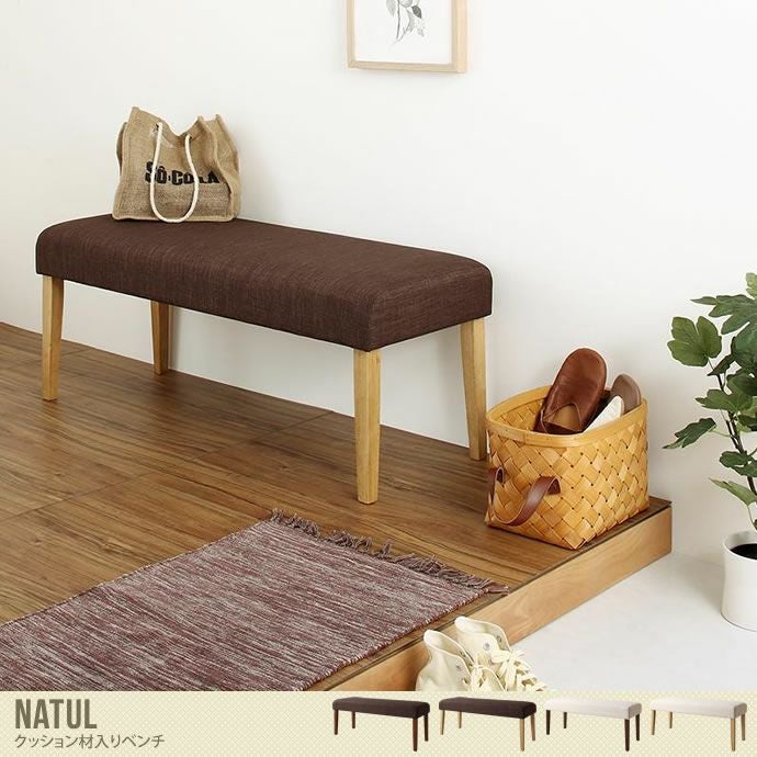 天然木と色合いが見事にマッチ♪4通りの組み合わせを楽しむことができる『Natul』クッション材入りベンチ。リビングや玄関、ダイニングなど様々な場所でお使いいただけます。弾力のあるクッション材を取り入れているので、座り心地バツグン!座面のふっくら感と合わせて可愛らしくお部屋の空間に溶け込みやすくなっています。北欧やヴィンテージテイストなど、どんなテイストのお部屋にも合わせやすいベンチです。