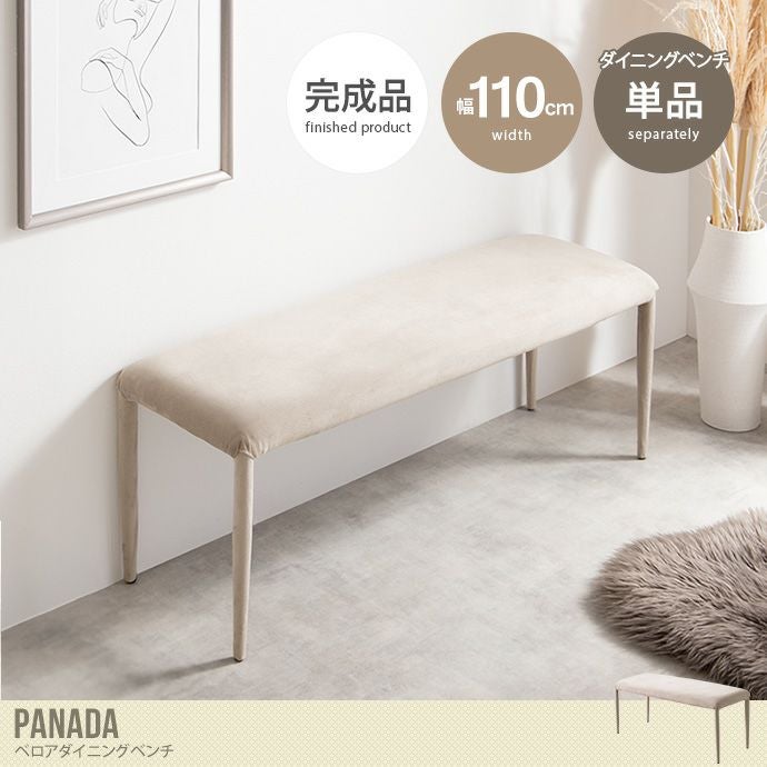 【送料無料】Panada パナダ 幅110 ダイニングベンチ チェア イス シート 長椅子 チェアー 食卓 リビング 完成品 いす 腰掛け ベロア 玄関 グレージュ