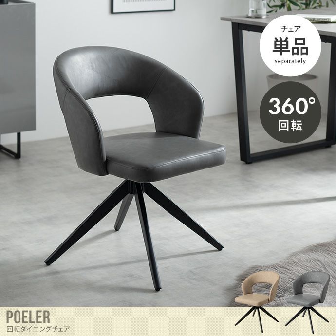 【送料無料】Poeler ポワレ ダイニングチェア 回転 肘付 レザー 1脚 ダイニング チェア 椅子 おしゃれ おすすめ 安い 食卓 リビング 黒脚 疲れにくい デスクチェアー キッチン アイアン 回転式チェア キャスター無し イス 肘付き ベージュ