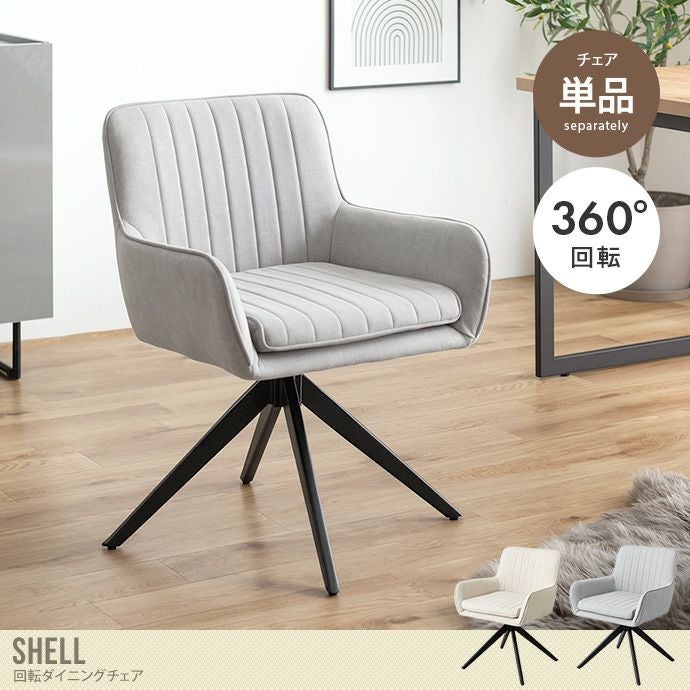 椅子を引かずに立ち座りができる『Shell(シェル)』360度回転ダイニングチェア。丸みのあるフォルムが、しっかり身体をホールド。沈み込みが少なく弾力性に優れたウレタンフォームを使用しているため、長時間座っても疲れにくい設計です。ダイニングやデスクなど、幅広いシーンで活躍します。