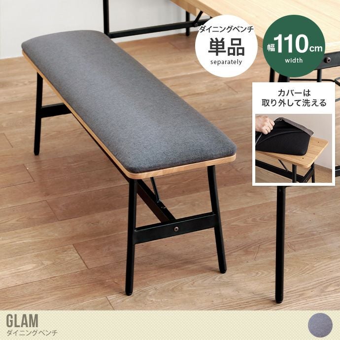空間に温もりと洗練をプラスする『Glam(グラム)』ダイニングベンチ。天然木の座面フレームとファブリック生地がやさしい雰囲気をつくり、ブラックスチールの脚がほどよいモダンさを添えてくれるデザインです。座面はカバー仕様となっており取り外しが可能で、ドライクリーニングに対応。食事中にうっかり汚してしまっても気軽に洗えるため、いつも清潔にお使いいただけます。