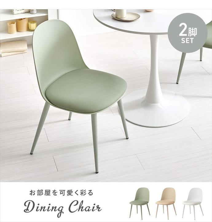 【送料無料】幅44.5 ダイニングチェア チェア デスクチェア おしゃれ おすすめ 安い 2脚セット イス 椅子 いす 食卓椅子 かわいい アームレス 一人暮らし 二人 ワンルーム リビング 食事 在宅 カフェ 軽い 軽量 お手入れ簡単 くすみカラー グリーン
