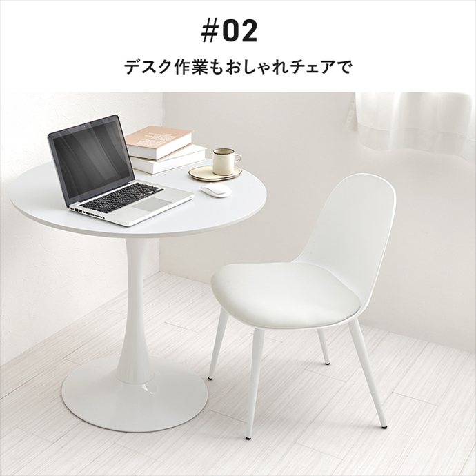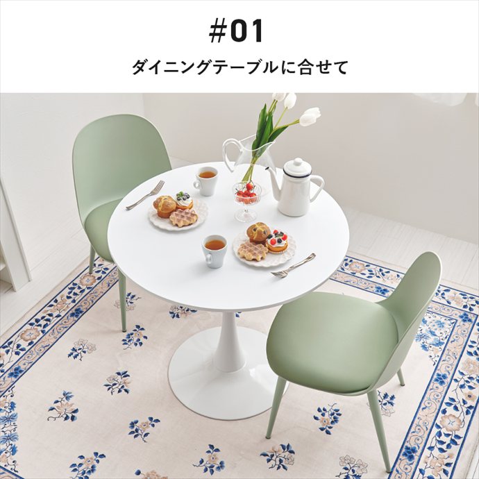 やさしいニュアンスカラーと丸みのあるフォルムが、置くだけでダイニングに柔らかな印象を与えるダイニングチェア。肘掛けのないアームレス仕様で、椅子の出し入れがしやすく、食事や作業の際も導線を妨げずお使いいただけます。また座面から脚先までを同系色で仕上げることで、統一感のあるデザインに。ごちゃつきがちなテーブルまわりをすっきり見せ、毎日の食卓を心地よい空間に導きます。