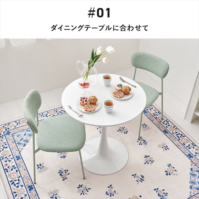 やさしいニュアンスカラーと丸みのあるフォルムが、置くだけでダイニングに柔らかな印象を与えるダイニングチェア。肘掛けのないアームレス仕様で、椅子の出し入れがしやすく、食事や作業の際も導線を妨げずお使いいただけます。また座面から脚先までを同系色で仕上げることで、統一感のあるデザインに。ごちゃつきがちなテーブルまわりをすっきり見せ、毎日の食卓を心地よい空間に導きます。