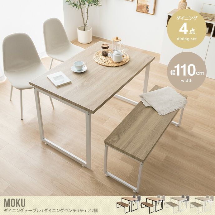 他の画像を見る 【送料無料】Moku モク 幅110 ダイニングセット テーブル おしゃれ おすすめ 安い 机 食卓 キッチン 長方形 チェア ベンチ コンパクト 奥行70 4点 木目 スクエア脚 ロの字型 リビング カフェ ファミリー PC 在宅 2人 4人 ナチュラル/グレージュ 販売価格 ¥ 35,996 税込 送料込 カートに入れる お気に入りに登録する