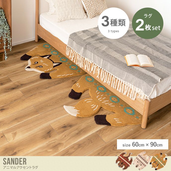 癒されるアニマルがモチーフの『Sander(サンダー)』アニマルアクセントラグ。上半身と下半身が分かれたアイデアが広がるセパレートタイプ。別々でも、2枚組み合わせてでもお使いいただけます。癒されるアニマルたちとさりげないネイティブ柄が、お部屋に置くだけでアクセントに。存在感も抜群です。また60cm×90cmとちょうどいいサイズ感なので、玄関やリビング、寝室など様々な場所でお使いいただけます。