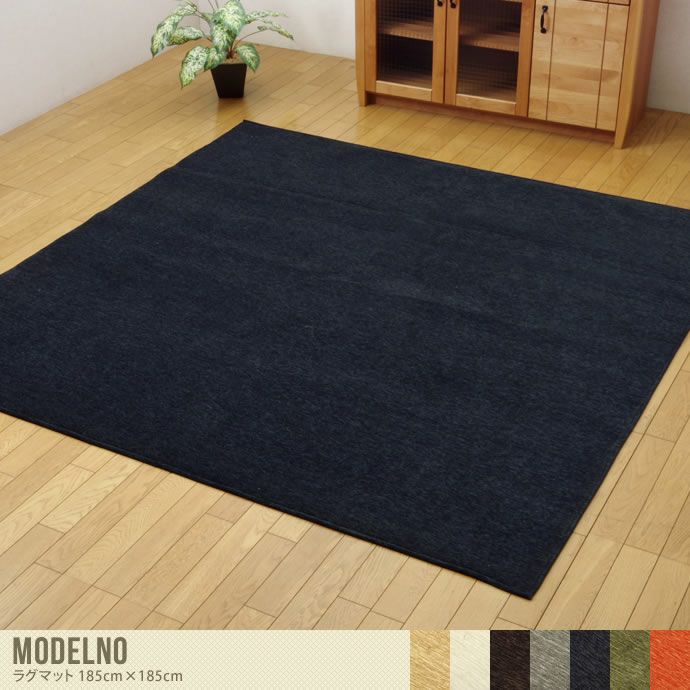 【送料無料】【185cm×185cm】 ラグマット ラグ マット 長方形 約2.5畳 リビング 部屋 カーペット 絨毯 オールシーズン 洗濯可 洗える ホットカーペット対応 床暖房対応 滑り止め 滑りにくい 撥水加工 薄型 シェニール織 無地 ベージュ アイボリー ブラウン グレー ブルー グリーン オレンジ Modelno ベージュ