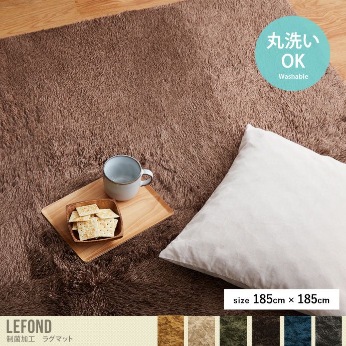【送料無料】185cm×185cm ラグマット ラグ マット カーペット 絨毯 正方形 おしゃれ 洗える 洗濯可 ウォッシャブル 北欧 オールシーズン マイクロファイバー シャギー ブラウン