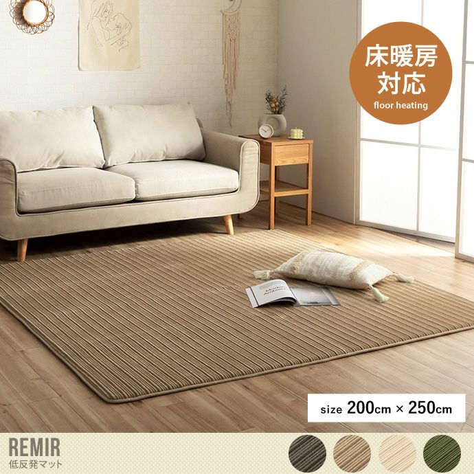 なめらかな肌触りと低反発のクッションが心地いい『Remir(レミール)』低反発マット。表地には肌触りの良いフランネル素材を使用し、表面の凹凸感がさらに触り心地のよさを引き出します。また、中材には低反発ウレタンを使用。柔らかい感触とボリューム感をお楽しみいただけます。また、オールシーズン対応のラグマットなので、夏場も快適にお使いいただけます。冬場はホットカーペットや床暖房の上でもご使用可能です。様々なインテリアやお部屋の雰囲気に合わせやすい、グレージュ・ベージュ・アイボリー・グリーンの4色展開です。