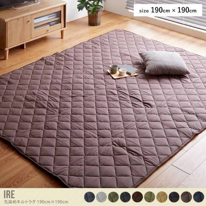 綿100%の先染め生地を使用した落ち着いた色味が美しいキルトラグ。先に糸を染色してから織られる生地は、色合いに深みがあり、落ち着いた居心地のいい空間を演出してくれます。また、嬉しいオールシーズン使用可能。床からの冷気も防いでくれ、ホットカーペットや床暖房にも対応しているので冷えやすい冬場も温かくお過ごしいただけます。さらに、長毛タイプに比べゴミが溜まりにくく、手洗いも可能なのでお手入れ簡単で、いつでも清潔にお使いいただけます。