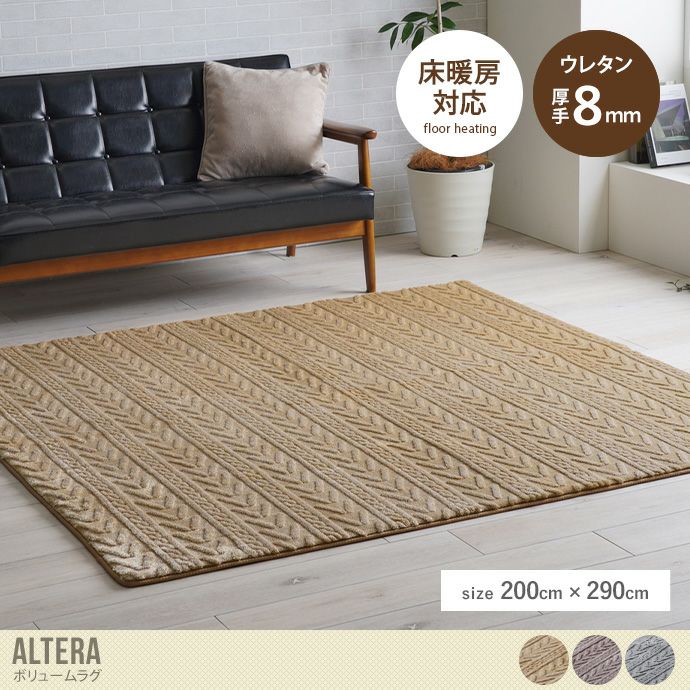 ジャガード織で幾何柄を表現した、おしゃれなラグ『Altera(アルテラ)』。中材にウレタン8mmを使用しているため、底付き感を感じにくく快適な座り心地です。裏面にはフローリングの上でもご使用いただけるよう、滑りにくい加工を施しております。ホットカーペット、床暖房対応。こたつ敷布団としてもおすすめです。