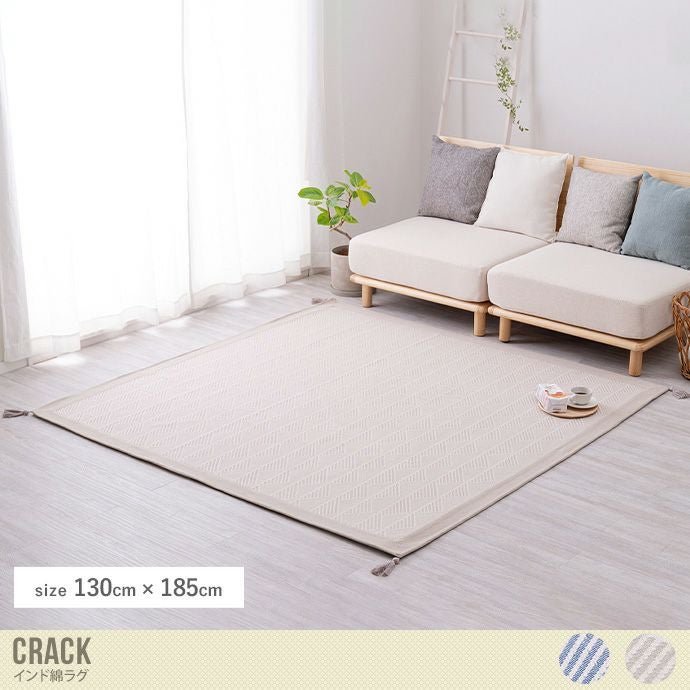 さらふわな手触りとインド綿らしい素朴で優しさのあるラグ『Crack(クラック)』。ラグの四つ角にはタッセルがついていてオシャレ。安心の滑り止め付きで洗濯機で丸洗いができるので年中お使いいただけます。