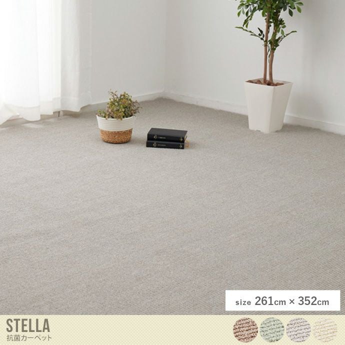 弾力があり、へたりにくいループパイルで作られた「「Stella(ステラ)抗菌カーペット」。足音や落下音などの防音効果があるだけでなく、安心の防ダニ・抗菌・防臭効果がある為、お子様やペットと暮らすご家庭でも安心してお使い頂けます。淡い色合いで、どんなお部屋にも馴染みやすいデザインで、ラグとしてもお使いいただける為大きいサイズのラグをお探しの方にも最適です。