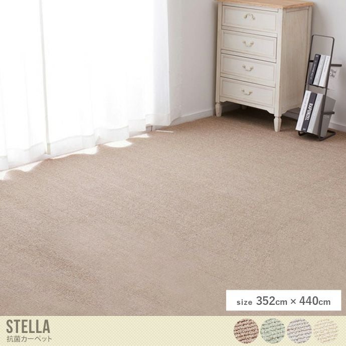 弾力があり、へたりにくいループパイルで作られた「Stella(ステラ)抗菌カーペット」。足音や落下音などの防音効果があるだけでなく、安心の防ダニ・抗菌・防臭効果がある為、お子様やペットと暮らすご家庭でも安心してお使い頂けます。淡い色合いで、どんなお部屋にも馴染みやすいデザインで、ラグとしてもお使いいただける為大きいサイズのラグをお探しの方にも最適です。