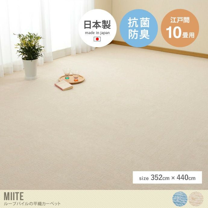 【送料無料】352×440 カーペット ラグ 絨毯 フロア マット ループパイル 平織 ミーテ 抗菌 防臭 フリーカット 日本製 江戸間10畳 切れる 床暖房 ホットカーペット対応 リビング ダイニング 子供部屋 寝室 ペット 犬 猫 ブルー