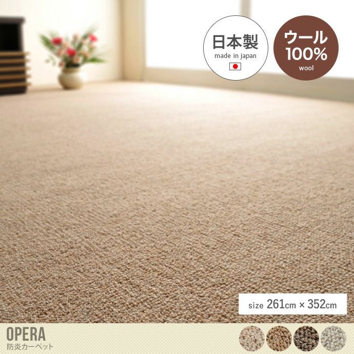 天然素材ウール100%の『Opera(オペラ)』防炎カーペット。通常のカーペットと比べ、密度少なめでふんわりとやさしいタッチを実現しました。ウールはホルムアルデヒドを吸着し、お部屋の空気をキレイに浄化してくれます。また、防ダニ・抗菌加工付きなのでいつでも清潔に使用可能。夏は涼しく、冬は暖かなウールカーペットで、オールシーズン快適に過ごしていただけます。