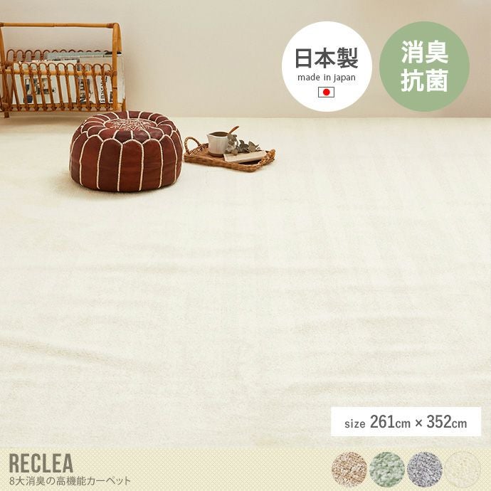 8大消臭機能付きの『Reclea(リクリア)』国産高機能カーペット。中材に消臭シートを入れることで、強力な消臭効果を実現しました。抗菌機能も優れているので、菌の繁殖を抑えていつでも清潔にお使いいただけるカーペットです。表面のパイルはカットされているので、ペットの爪が引っかからず、安心してお使いいただけます。