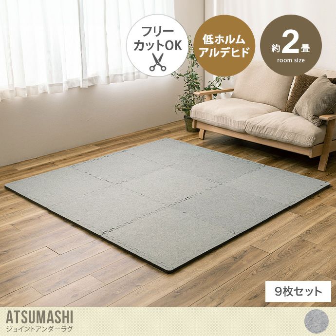 薄手のラグももっちりフカフカな踏み心地に変えてくれる『Atsumashi(アツマシ)』ジョイントアンダーラグ。しっかり高密度の低反発ウレタンが、子供の走る音やおもちゃで遊ぶ音などの防音対策に効果的。裏と表のどちらにも滑り止めが付いているため、床のズレとラグのズレ、どちらにも対応できる優れものです。また汚れてしまっても1枚単位で交換できるため、衛生的にお使いいただけます。