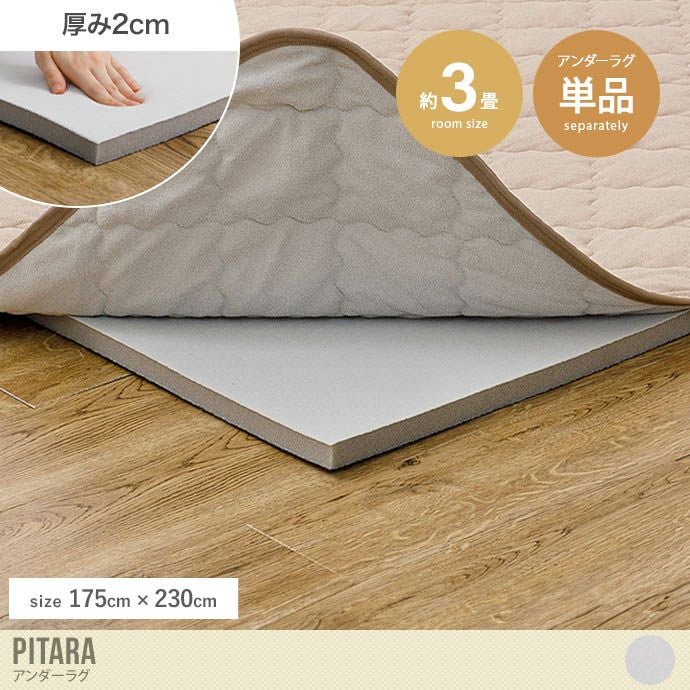 ピタッとズレずに密着してくれる『Pitara(ピターラ)』アンダーラグ。高反発で寝転がっても床つき感なく、しっかりとしたウレタン仕様で防音対策にも最適。小さなお子様がいるご家庭でも安心してお使いいただけます。また別売りのラグパッドと組み合わせることにより、吸いつくような密着感で、ラグのズレ問題もラクラク解決。折り返しても落ちにくく、掃除機掛けもスムーズにしていただけます。