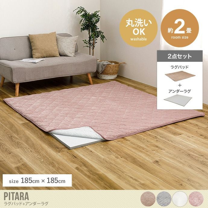 ピタッとズレずに密着してくれる『Pitara(ピターラ)』ラグパッド+アンダーラグ2点セット。吸いつくような密着感で、ラグのズレ問題もラクラク解決。折り返しても落ちにくく、掃除機掛けもスムーズにしていただけます。またラグはメレンゲのようなふんわりなめらかな肌触りで、寝転びたくなるような気持ち良さ。保温効果もあるため、寒い冬におすすめです。アンダーラグは高反発で寝転がっても床つき感なく、しっかりとしたウレタン仕様で防音対策にも最適。小さなお子様がいるご家庭でも安心してお使いいただけます。