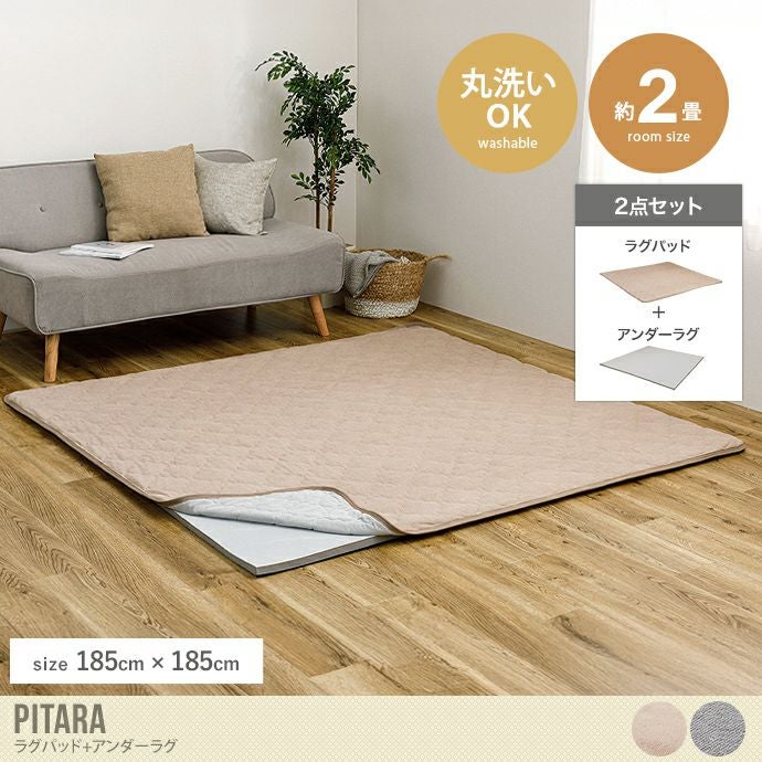 ピタッとズレずに密着してくれる『Pitara(ピターラ)』ラグパッド+アンダーラグ2点セット。吸いつくような密着感で、ラグのズレ問題もラクラク解決。折り返しても落ちにくく、掃除機掛けもスムーズにしていただけます。またラグは綿100%のさらっと優しい触り心地のパイル生地を使用。季節問わずオールシーズンお使いいただけます。さらにアンダーラグは高反発で寝転がっても床つき感なく、しっかりとしたウレタン仕様で防音対策にも最適。小さなお子様がいるご家庭でも安心してお使いいただけます。