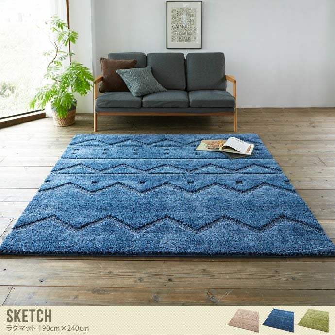 『Sketch』ラグマット(190cm×240cm)は、ふわふわの肌触りでボリュームたっぷり、ジグザグ模様のラグマットです。肌触りが心地良く、リラックス空間を作り出し、横になってウトウト寝てしまいそうな至福のひとときを感じることができます。北欧系から西海岸風まで幅広いインテリアと合わせやすくなっています。ホットカーペットや床暖房の上でもご使用いただけるので、オールシーズンお使いいただけます。