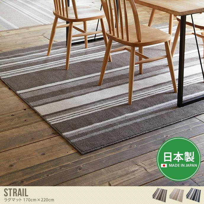 『Strail』ラグマット(170cm×220cm)は、ストライプ柄と落ち着いた色合いがモダンな印象を与えるラグマットです。北欧系やモダンなインテリアとの相性バツグン!ストライプ柄のデザインがモダンな印象を与え大人っぽいお部屋を演出してくれます。お部屋に置くだけでインテリアのアクセントになりますよ!アットホームな空間にピッタリなラグマットです。