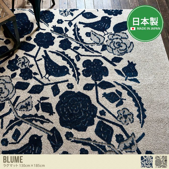 【送料無料】【130cm×185cm】 ラグ ラグマット 絨毯 カーペット 長方形 ホットカーペット 床暖 防ダニ 滑り止め オールシーズン 花 北欧風日本製 おしゃれ かわいい ブルー