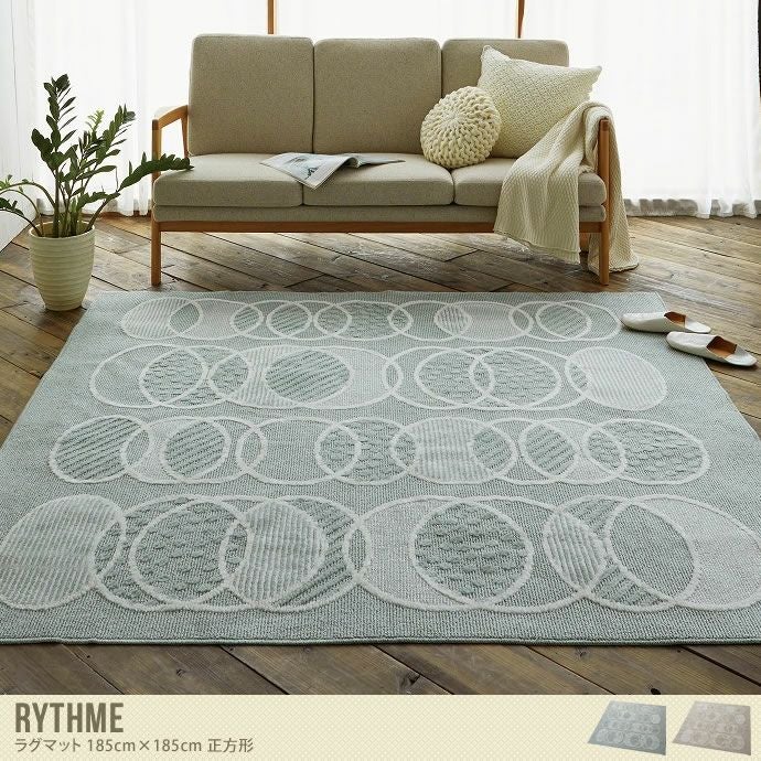 可愛らしい大きめの丸柄デザインが目を惹く『Rythme(リトム)』ラグマット(185cm×185cm)の登場です。落ち着いたデザインと色合いで仕上げられているので、あらゆるインテリアと合わせやすくなっています。コンパクトに折りたたむことができるので、お洗濯する際もラクラク!また、耐熱加工を施しているので、ホットカーペットや床暖房の上敷きとしてお使いいただけます。寒い冬の季節もポカポカと暖まりながらお過ごしいただけます。