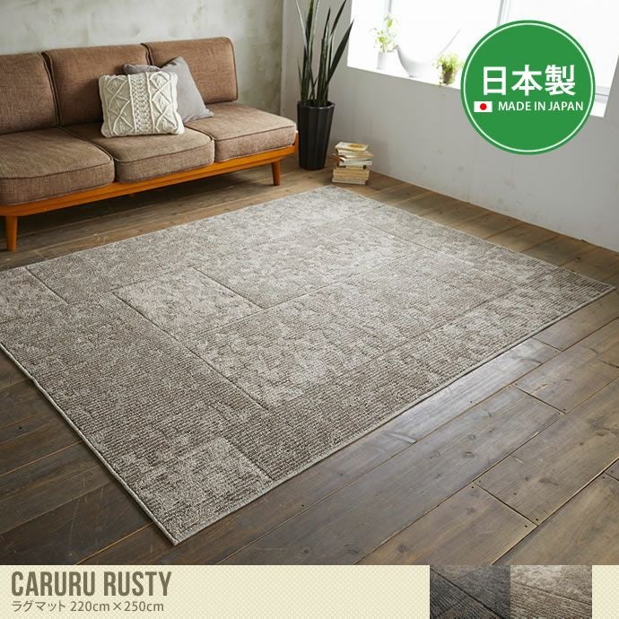 金属のさびをテクスチャー表現した無地調ダイニングラグ『Caruru Rusty』です。日本製で肌触りも気持ちよく小さなお子様がいらっしゃる方にも安心してお使い頂けます。モダンなテイストに合わせやすい絶妙な色使いと糸の組み合わせで織りなす表現は鉄のような重厚さと存在感が魅力です。洗濯ネットが付属で付いておりお洗濯もラクラクです。清潔に使用したい方にオススメです!サイズは220cm×250cmです。