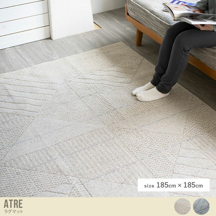 ジオメトリック柄の落ち着いた風合いで、遊び毛が出にくく、耐久性・摩耗に強い、季節を問わないラグマットです。ホットカーペットや、床暖にも対応し、洗濯機で丸洗いも可能なので、年中清潔にお使いいただけます。