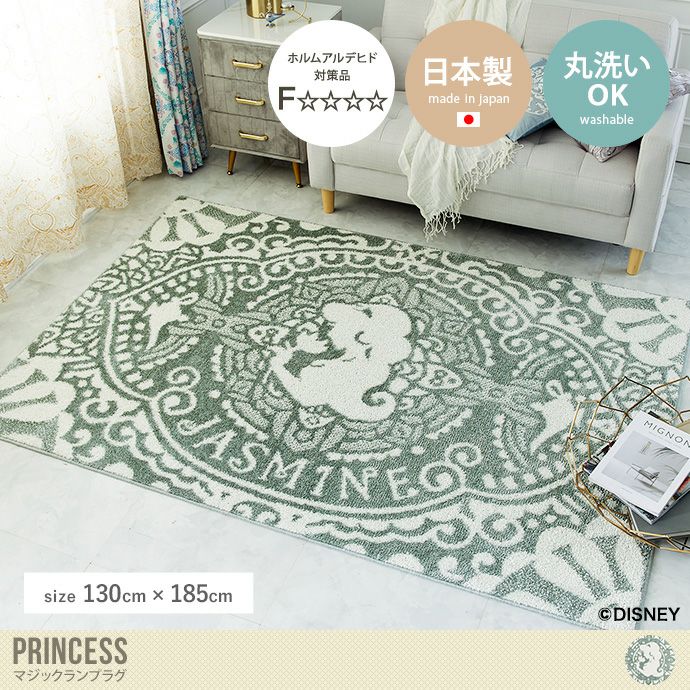 【送料無料】130×185 ラグマット ラグカーペット 絨毯 ウォッシャブル 洗濯機洗い対応 床暖房対応 遊び毛防止 スミノエ ディズニー Disney home PRINCESS アラジン ジャスミン 日本製 長方形 じゅうたん 丸洗い 四角 グリーン
