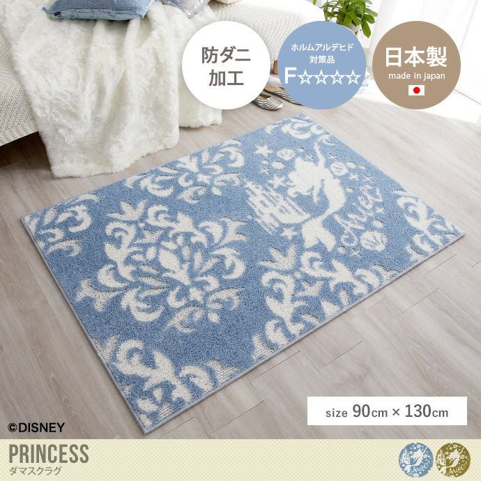 【送料無料】90×130 ラグマット カーペット 絨毯 ディズニー プリンセス ダマスク DRT-1069 アリエル 防ダニ 床暖房対応 ホットカーペット可 遊び毛 抜け毛 裏面不織布 傷防止 耐熱加工 ホルムアルデヒド対策 ブルー