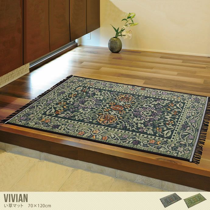 落ち着いた色合いの中、豪華な織りの風合いが目を惹く”Vivian”い草マット。国産のい草を使い日本の職人によって作り上げられた”和の美しさ”が光る70×120cmのい草マットは、洋室にも和室にもスッと馴染みます。い草には湿度調節・悪臭などの空気浄化作用・香りのリラックス効果など沢山の効果があり、敷くだけで生活をより快適なものにしてくれますよ♪マットの裏には滑り止め加工もされているので、安全にお使いいただけます。