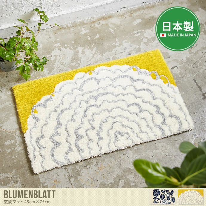 エントランススペースを明るいイメージに演出してくれる玄関マット『Blumenblatt』です。パイル長さ10mmとフカフカの仕上がりで肌ざわり抜群♪裏面には滑り止め加工が施されているので、出入りの多い玄関にピッタリです。こちらの商品は安心の日本製です。ダニの増殖を抑える防ダニ加工が施されているほか、洗濯機での丸洗いがOKなので、いつも気持ち良くお使いいただけます。