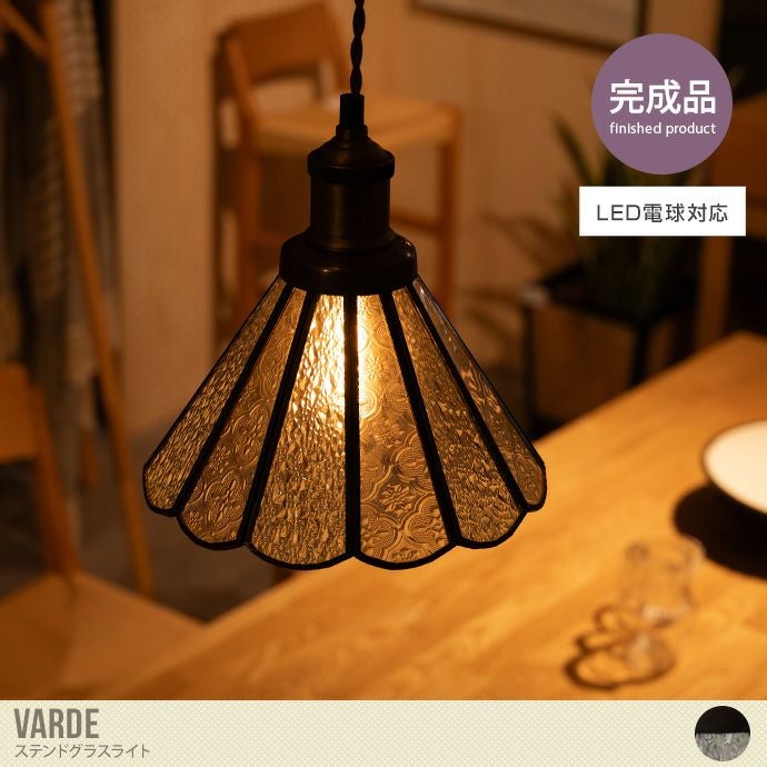 レトロ感漂う『Varde(バーデ)』のペンダントライト。ステンドグラスのシェードは立体的な模様が特徴的でどこか懐かしいノスタルジックな雰囲気を感じさせます。シンプルだけど可愛らしいステンドグラスは消灯時にもインテリアとして演出。一灯はもちろん、広範囲には多灯付けがおすすめです。