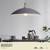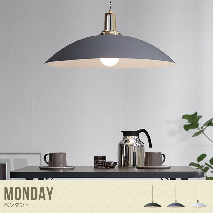 柔らかく丸いシルエットで、シンプルでモダンなイメージのペンダントライト『Monday』です。大きめサイズのシェードは存在感があるので、リビングやダイニングなど大きな空間の照明としてピッタリ!お部屋をモダンでオシャレな雰囲気に演出してくれます。お色はブラック・グレー・ホワイトの3色ご用意しました。天井空間をグッと引き締めるブラック、クールなイメージのグレー、お部屋全体を明るくするホワイト。お部屋の雰囲気に合わせてお選びいただけます。