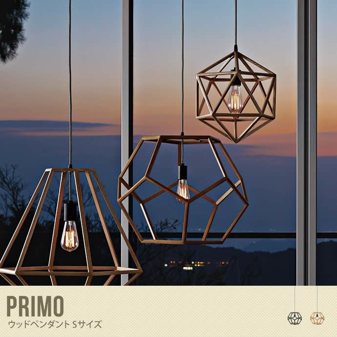 ウッドフレームを多角形に組み上げたオシャレなペンダントライトです。天然木の素材感から温かみが感じられ、フレーム枠の隙間から広がる光の陰影が独特の雰囲気を醸し出してくれます。多角形のオープンタイプなので圧迫感がなく、光が多方向に広がりやすいので、お部屋がより明るく感じられます。消灯時にはインテリアオブジェとしての楽しみ方も♪