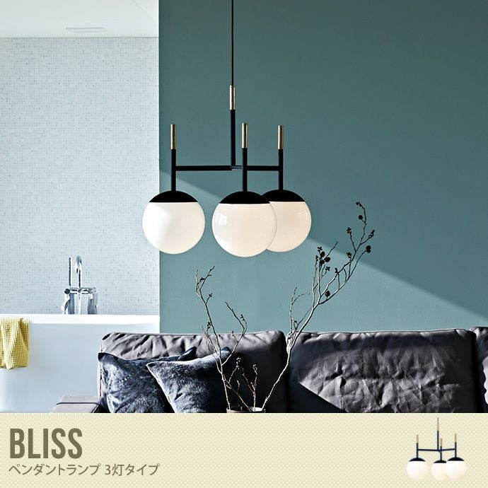 品のある上質なリラックスムードを演出してくれる高級感のあるガラスシェードがオシャレな『Bliss ペンダントランプ 3灯タイプ』。無駄のないシンプルモダンな球体デザインで、モノトーンのカラーリングに真鍮のゴールドが効いた大人の落ち着いたインテリアにマッチするウォールランプです。トータルコーディネート出来るようにシリーズで1灯タイプのペンダントランプとウォールランプをご用意しております。モノトーンスタイルやホテルライクスタイルにマッチするオシャレな照明アイテムです。白熱電球が付属しているので届いたその日からすぐにご利用いただけます。