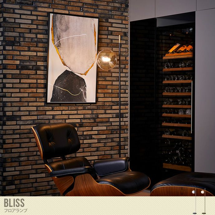 ガラスグローブから溢れる柔らかな光とシックなカラーリングが大人の上質なリラックス空間を演出してくれる、スタンドタイプのライト『Bliss フロアランプ』。無駄のないスタイリッシュでモダンなデザインで、モノトーンのカラーリングに真鍮のゴールドが効いた大人の落ち着いたインテリアにマッチするフロアランプです。モノトーンスタイルやホテルライクスタイルのお部屋にもピッタリ。白熱電球が付属しているので届いたその日からすぐにご利用いただけます。