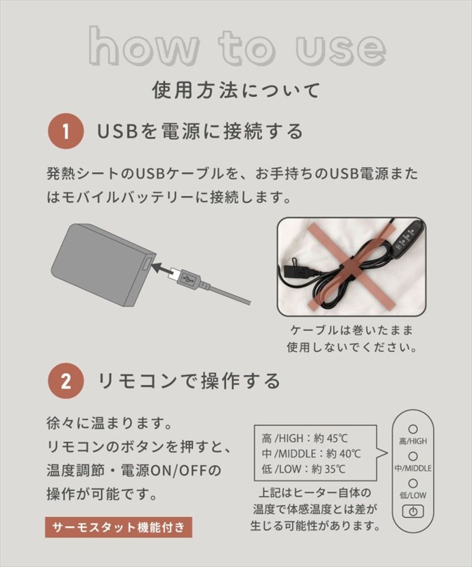 ※洗濯時は必ずUSB発熱シートを取り外してください。