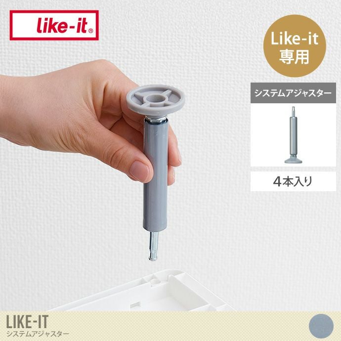 幅3.8 インテリア雑貨 アジャスター システムアジャスター 4本入り ライクイット like-it ライクイット専用 パーツ オプションパーツ 簡単取り付け 高さ調節 後付け 収納ボックス 収納ケース 洗面所 シルバー