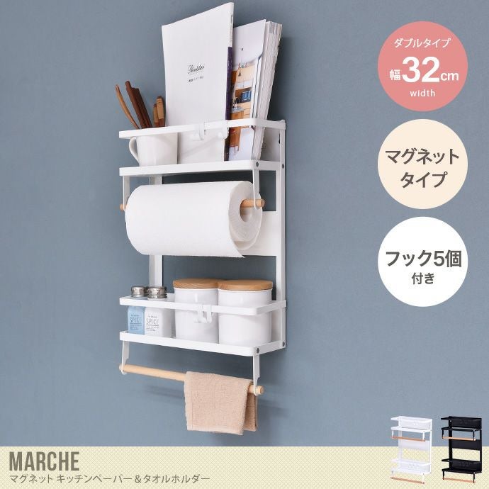 他の画像を見る 幅32 ラック ペーパー タオルホルダー 大 マルチ収納 洗濯 タオル掛け Marche マルシェ 雑貨 マグネット ダブル ホワイト タイプ 洗濯機 洗面所 ランドリー キッチン 冷蔵庫 ラップ アルミホイル 調味料 浮かせる 洗剤 収納 販売価格 ¥ 4,240 税込 在庫切れ カートに入れる お気に入りに登録する